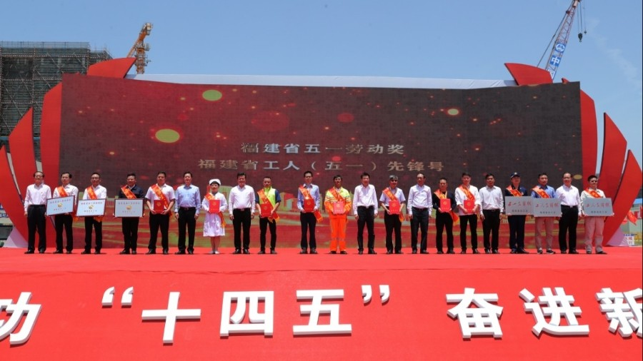 2021 年 4 月 30 日,福建省庆祝“五一”国际劳动节暨劳动和技能竞赛群英会在中铁六局福州滨海快线项目部现场拉开了序幕。