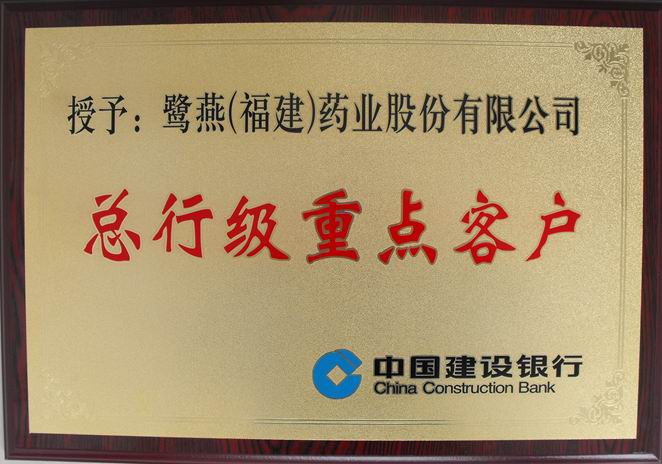 基于鹭燕企业优异的业绩表现、稳健的经营管理风格和良好的资信情况,经过中国建设银行的严格审评,近日,鹭燕(福建)药业股份有限公司被认定为中国建设银行“总行级重点客户”。