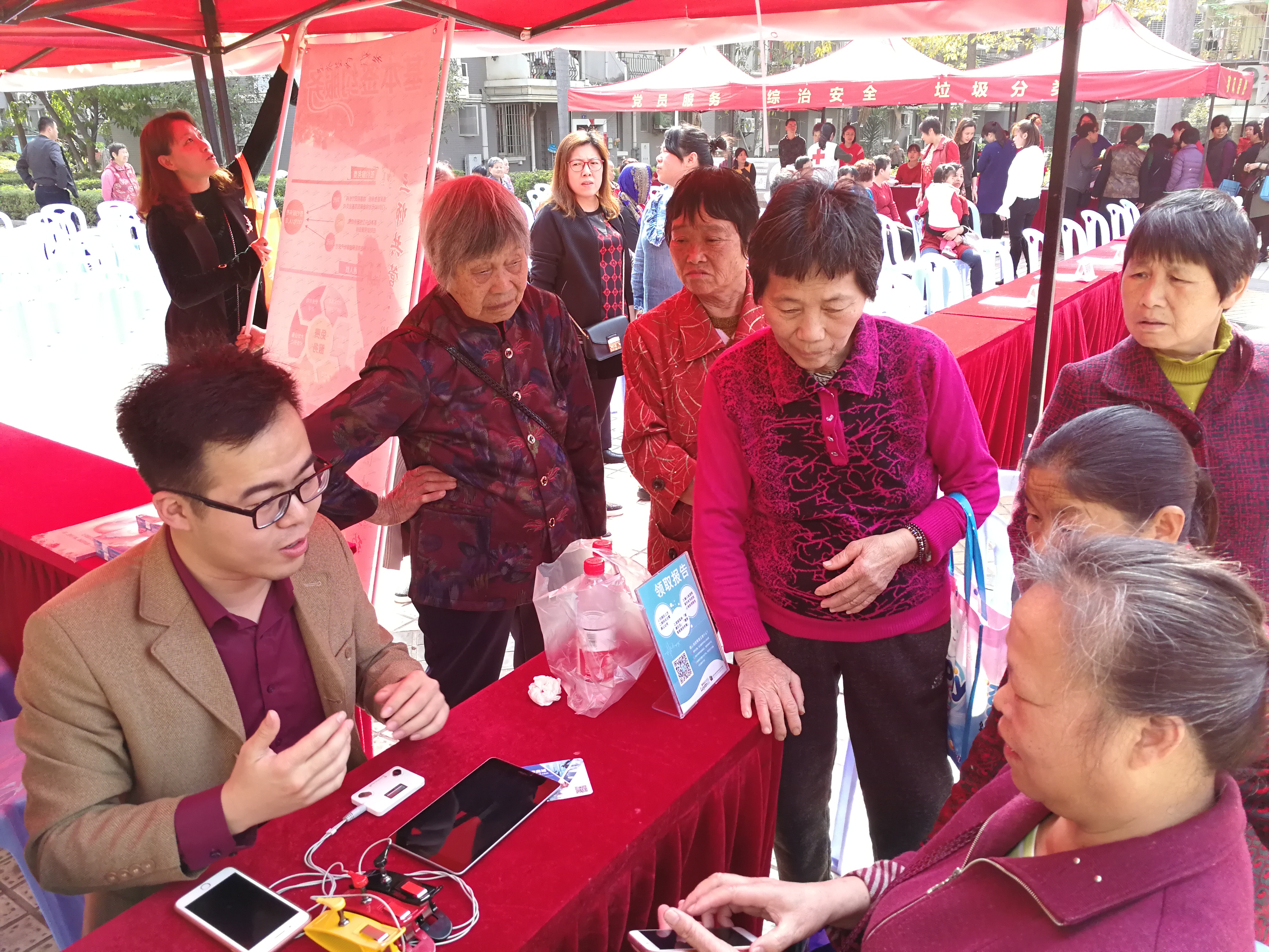 人工智能介入医疗健康领域,最终是为了人类健康事业服务。因此仅有超强的判读能力还不够,用户体验也至关重要。年中三款心电仪设备面世后,康源研究院研发工程师就带着部分产品参加了湖里区卫计局的“百名专家进社区”义诊活动,直面用户,收集第一手的用户反馈情况,以便于后续对产品进行升级迭代。